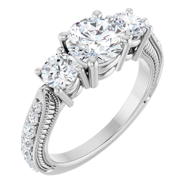 122352 / Ring / Unset / 14K X1 White / Round / 6.5 Mm / Polished / Three Stone Engagement Ring Mounting