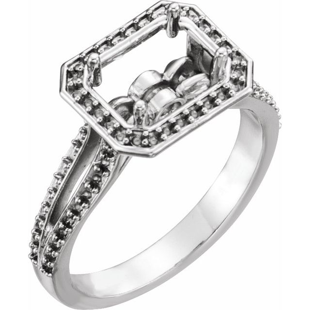 122040 / Engagement Ring / Unset / 14K X1 White / Emerald / 6 X 4 Mm / Polished / Halo-Style Engagement Ring Mounting