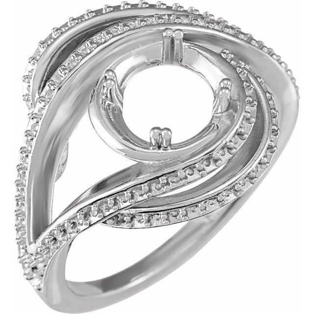 14kt X1 White 5.2 mm Round Accented Engagement Ring Mounting