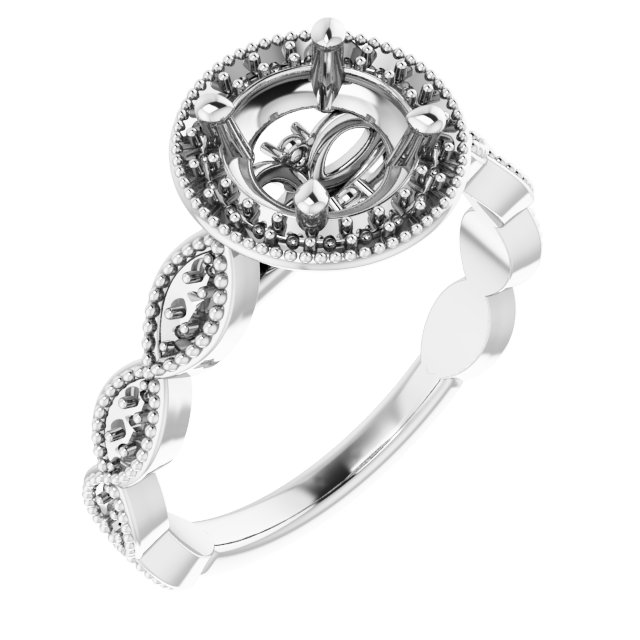 123691 / Engagement Ring / Unset / 18K White / Round / 6.5 Mm / Polished / Halo-Style Engagement Ring Mounting